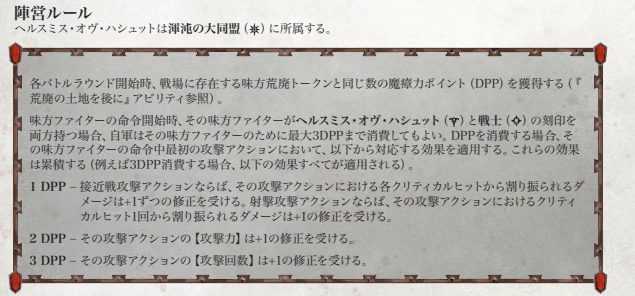 数値的にはちょっと低いかな、と思いますが注目なのは陣営特性。前述のヘルスミス陣営のDPPを割り振りする対象にちゃんと入ってるんですよね、彼ら。なので上記のアビリティの活用+DPP強化も加えられるんで、中々ヘルスミスのオプションとしては使い勝手は悪くないんじゃないでしょうか。