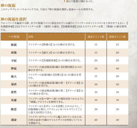 要はファイター一体一体に対して、ポイントを+で支払うことで強化できますよというもの。これでミニチュアが足りなくてゲームができないということも、なんかちょっと気になるポイントが余るということもなくなります。やったぜ!