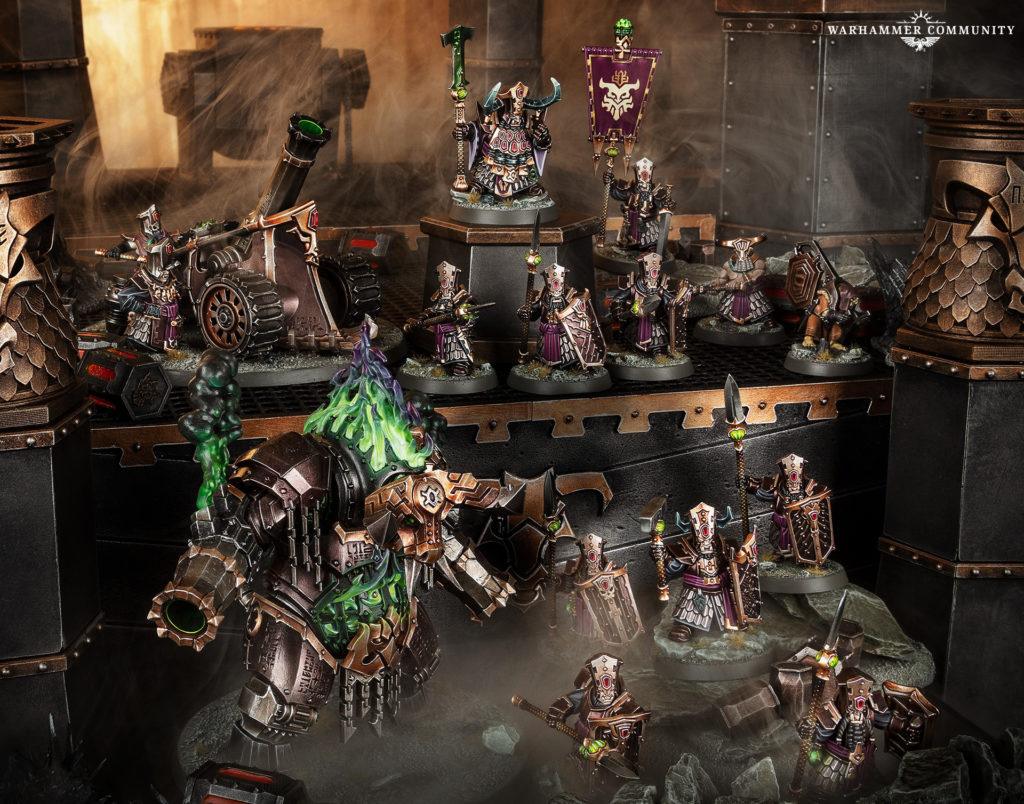 これはすでにAOSやアンダーワールドのヘルスミス陣営だとお馴染みですが、要は独自のリソースを持ってゲーム内で自軍の強化を行えるというヘルスミス陣営ではおなじみルールで、これがウォークライにも適用されています。