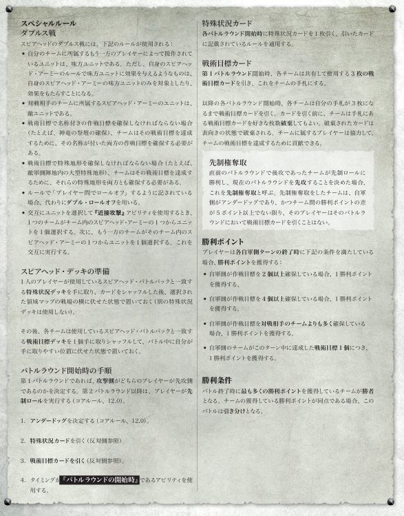 従来のスピアヘッドを遊んでいる方であればそれほど悩む所はないと思いますが、簡易的な書き方のため初見だと「実際どう動かすんや?」と迷う部分も少なくありません。