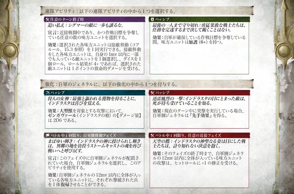記事の内容については使う場合の定石として、また対峙した時の参考としてお使い下さい(なお今回も連隊アビリティと強化等の選択オプションについては触れません。一応画像は乗っけときますね。相手と戦術に合わせて色々試しましょう)